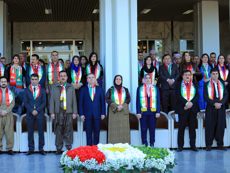 The Kurdistan Parliament’s Presidency, MPs and staff on 17 December celebrated Kurdistan Flag Day, raising the flag on the outdoor grounds of the Parliament.