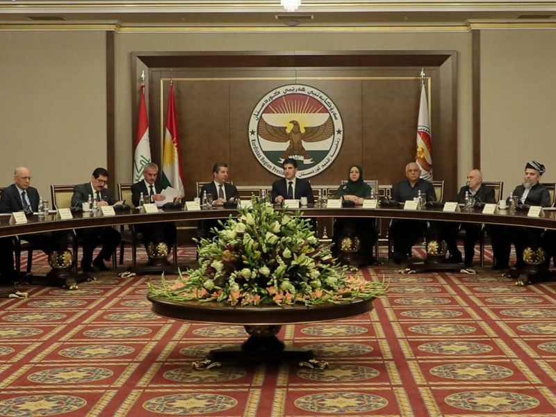 Kurdistan Region President Nechirvan Barzani on 8 January chaired a meeting of Kurdistan’s three presidencies and political parties, which was attended by Parliament Speaker Dr. Rewaz Faiq, Deputy Speaker Hemin Hawrami, KRG Prime Minister Masrour Barzani, and leaders of Kurdistan’s political parties. They issued the following statement following the meeting.