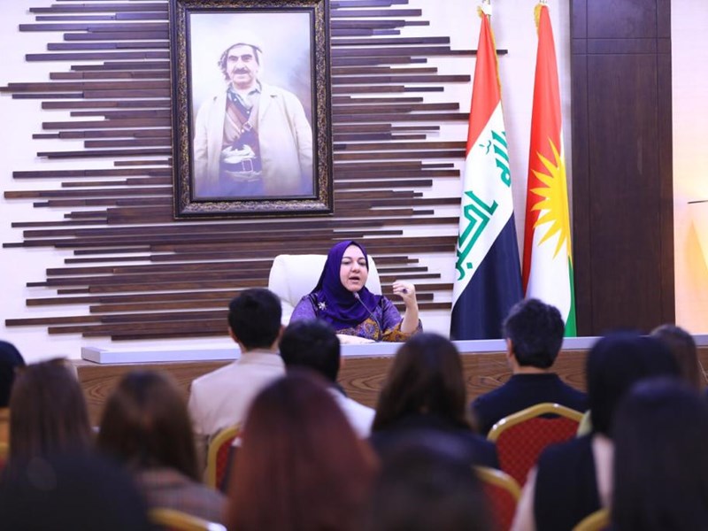 Kurdistan Parliament Speaker Dr. Rewaz Faiq on 7 February 2022 gave a talk to fourth year students and lecturers of Duhok University’s Sociology Department in the Faculty of Humanities, on the work and responsibilities of the Parliament.