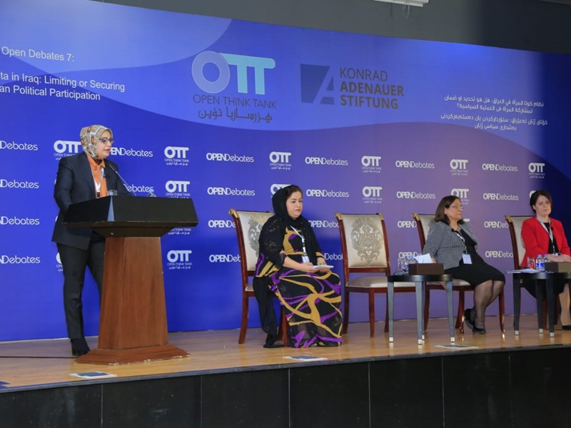 The Secretary of the Kurdistan Parliament Muna Kahveci on 17 October participated in a special conference on the system of having minimum quotas for women in certain institutions and organisations, such as the Kurdistan Parliament. The conference was organized by the NGO Open Think Tank, at Saad Abdullah Palace Conference Hall.