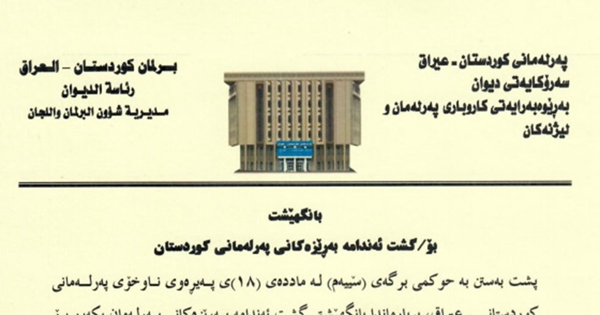 9 January - The Speaker of the Kurdistan Parliament Dr. Rewas Faiq calls MPs to an ordinary sitting on Sunday 12th January at 11am.