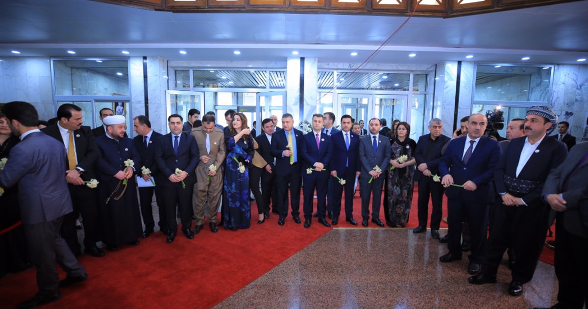 Everyone paid their respects by laying flowers in front of Mulla Mustafa Barzani’s painting in the main entrance hall of Parliament, to honour his struggle for democracy and Kurdistan’s rights.