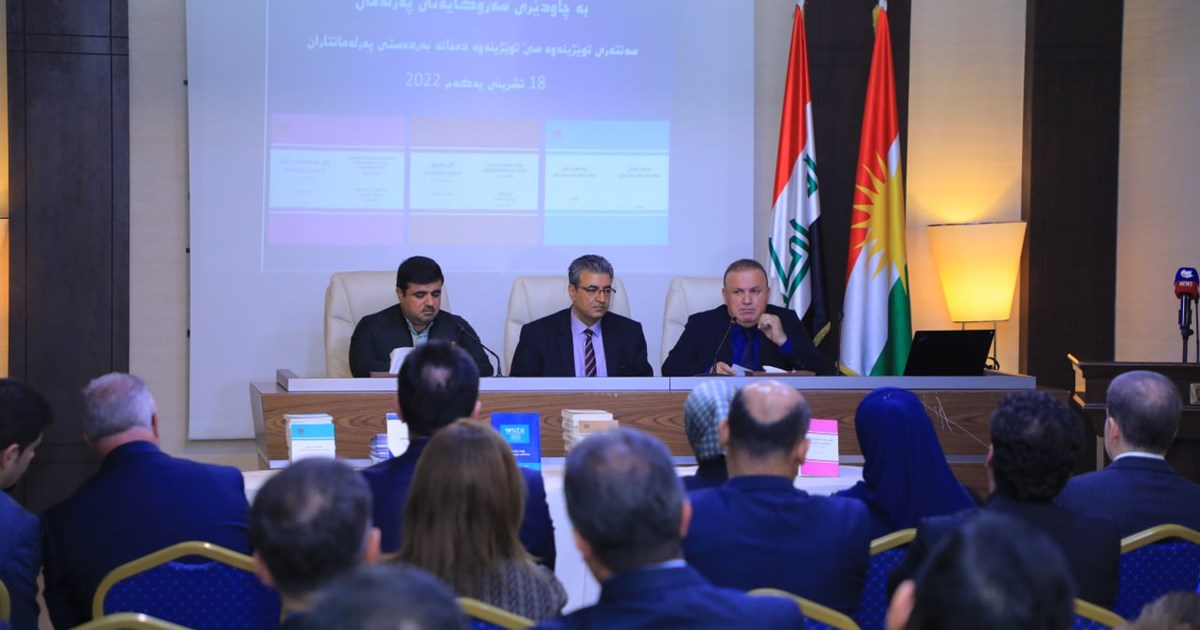Kurdistan Parliament’s Presidency led by Speaker Dr. Rewaz Faiq on 18 October 2022 attended the launch of three research books published by Parliament, and three guides to parliamentary work published by the National Democratic Institute (NDI).