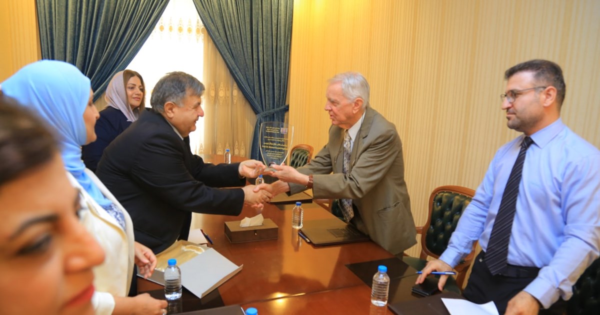 قامت لجنة الصحة والبيئة وحقوق المستهلك في البرلمان اليوم الاثنين 2022/5/23 برئاسة د. صباح زيباري رئيس اللجنة وبحضور نائب رئيس اللجنة وعدد من أعضاء اللجنة باستقبال البروفيسور مايكل هيوسن الخبير في أمراض السرطان وأمراض الكلى وغيرها.