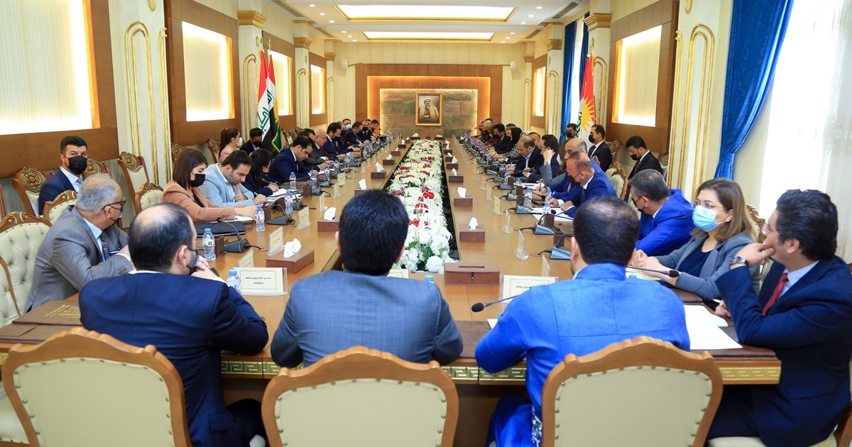 اجتمعت اليوم الإثنين ١٢/ ٤/ ٢٠٢١ هيئة رئاسة برلمان كوردستان بإشراف د. ريواز فايق رئيس برلمان كوردستان، وحضور د. هيمن هورامي نائب رئيس برلمان كوردستان، ومنى نبي القهوجي سكرتير برلمان كورستان في قاعة التشريفات بالوفد المفاوض لحكومة الإقليم برئاسة السيد قُباد الطالباني نائب رئيس حكومة إقليم كوردستان.