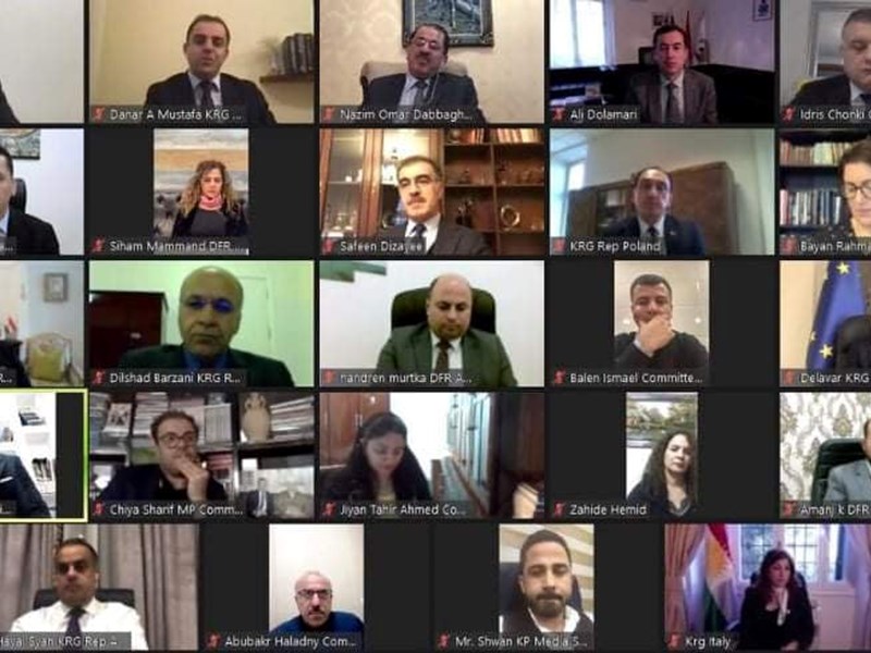 عقدت اليوم 18/1/2021، لجنة العلاقات والجالية الكوردستانية بالتنسيق مع دائرة العلاقات الخارجية، برئاسة د. ريبوار بابكي رئيس اللجنة وسفين دزيي رئيس دائرة العلاقات الخارجية ومشاركة السادة أعضاء اللجنة البرلمانية، اجتماعاً عبر فيديو كونفرانس مع الممثليات الخارجية في حكومة إقليم كوردستان.