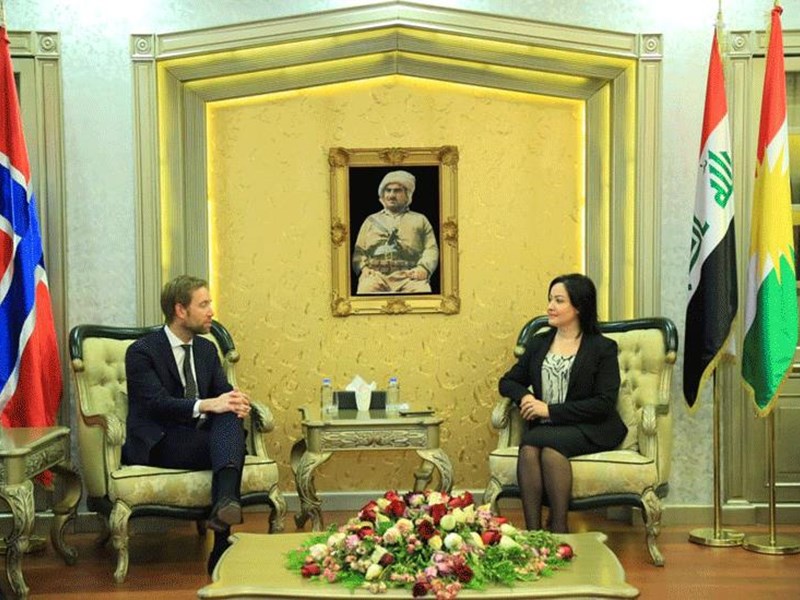 5nd May 2019 – Parliament Speaker Dr. Vala Farid on 2nd May met a delegation from the Foreign Ministry of Norway, led by the ministry’s Special Representative Mr. Knut Lein, and Ms. Tone Allers, Norway’s Ambassador to Jordan and Iraq. Mr. Lein informed the Speaker that Norway aims to hold a conference regarding the Genocide against the Yazidi people.