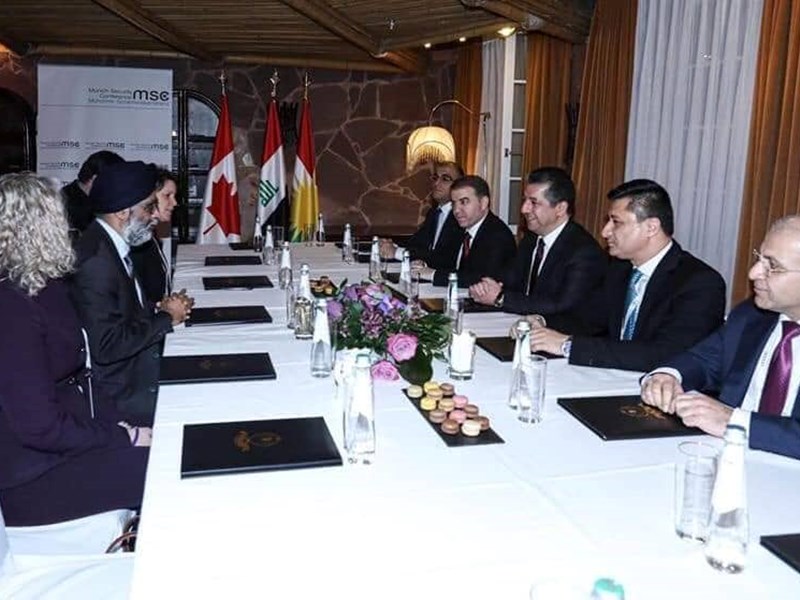The Kurdistan Region delegation at the Munich Security Conference, headed by Prime Minister Masrour Barzani and accompanied by Parliament Deputy Speaker Hemin Hawrami, on 16 February met with the foreign ministers of France, Germany, Jordan, Turkey, Iran and Iraq, Canada’s Defence Minister, the UK’s National Security Adviser and other officials.
