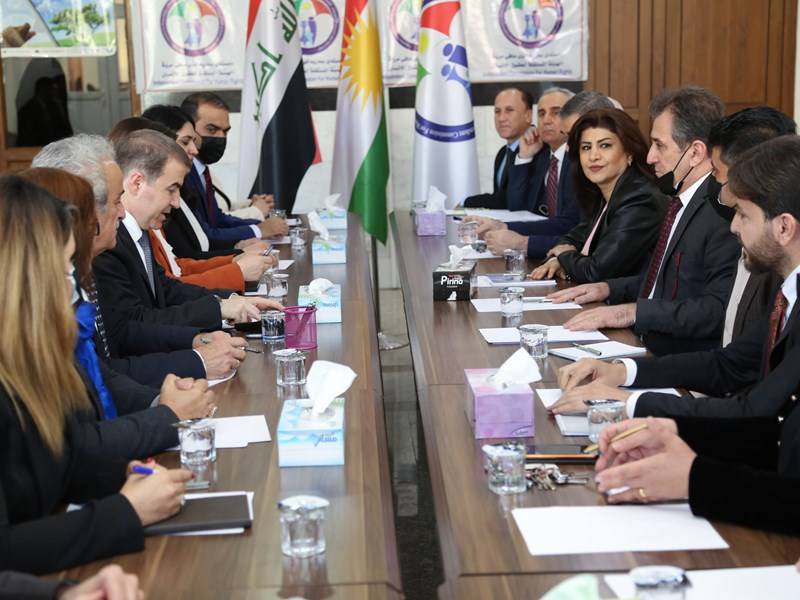 As part of a series of recent visits to institutions to monitor the government’s work, Kurdistan Parliament’s Deputy Speaker Dr. Hemin Hawrami on 14 February led MPs in a meeting with KRG Minister of Labour and Social Affairs Kwestan Muhammad and her colleagues at the ministry.