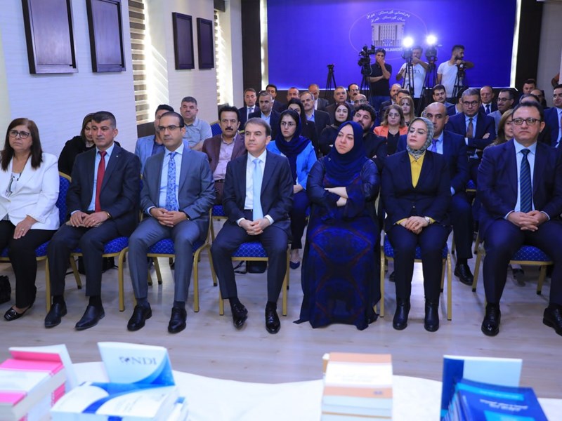 Kurdistan Parliament’s Presidency led by Speaker Dr. Rewaz Faiq on 18 October 2022 attended the launch of three research books published by Parliament, and three guides to parliamentary work published by the National Democratic Institute (NDI).