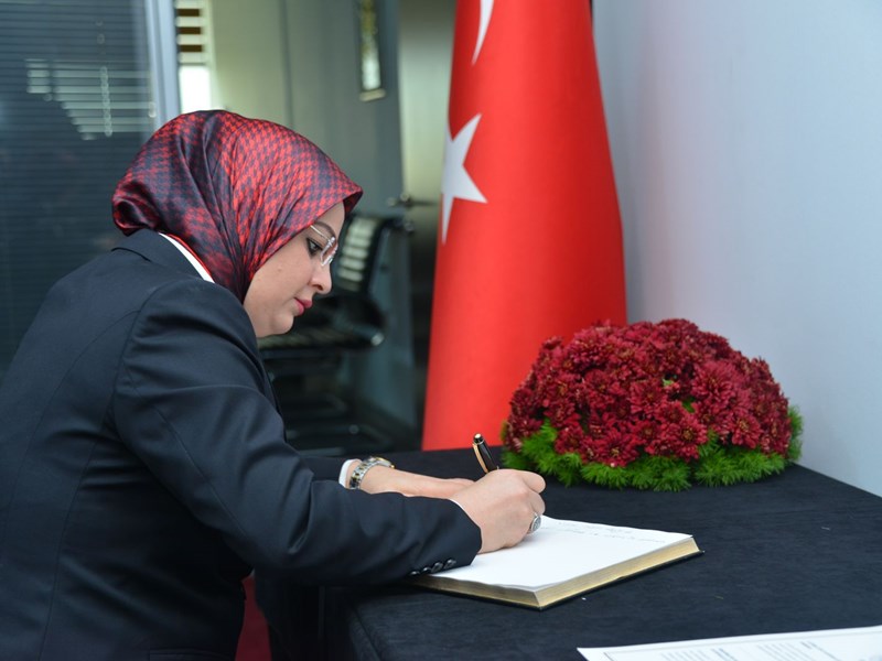 Secretary Muna Kahveci signs book of condolence for victims of Turkey's earthquake
