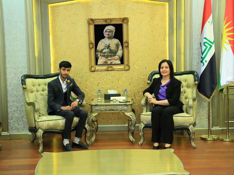 Kurdistan Parliament Speaker Dr. Vala Fareed and Secretary Muna Kahveci welcomed to Parliament Mansour Qadir, Kurdistan Region’s top student in this year’s 12th grade high school exams.