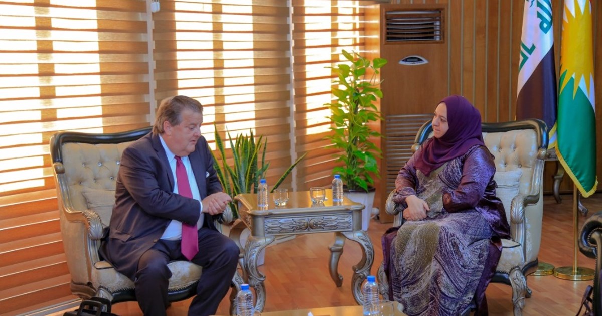 Speaker Faiq briefed Mr. William Spencer, Executive Director for the Institute for International Law and Human Rights (IILHR), on Kurdistan Parliament’s previous work and current priorities. She said that she wants the Kurdistan Region to have a body of legislation by benefiting from Iraq’s laws, in accordance with Article 110 of the Iraqi Constitution.