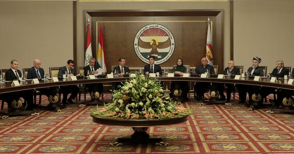 Kurdistan Region President Nechirvan Barzani on 8 January chaired a meeting of Kurdistan’s three presidencies and political parties, which was attended by Parliament Speaker Dr. Rewaz Faiq, Deputy Speaker Hemin Hawrami, KRG Prime Minister Masrour Barzani, and leaders of Kurdistan’s political parties.