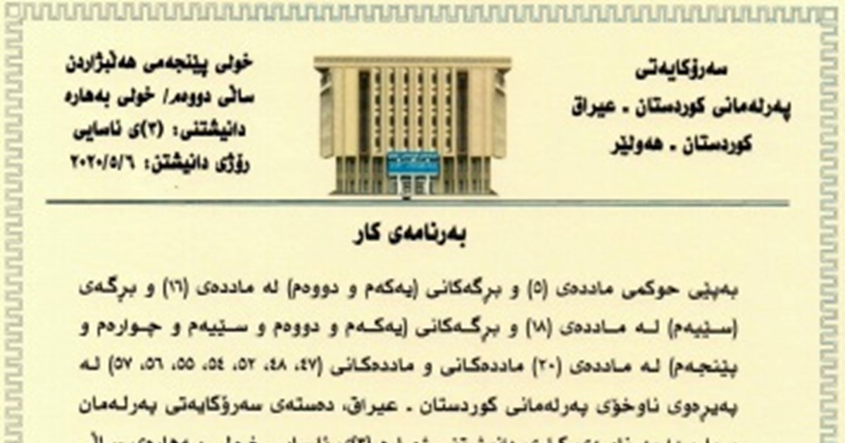 The Presidency of the Kurdistan Parliament announces the order of business for the sitting of 6th May: