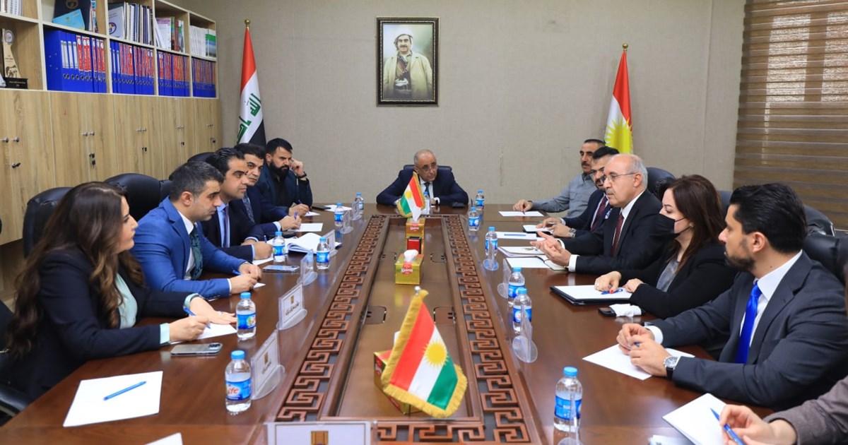 Also at the meeting were the Minister for the Region for Parliament Affairs, Dr. Vala Farid; Deputy Minister of Natural Resources Ahmad Mufti; Director General of the Ministry’s Diwan, Rebin Zangana; and Director General of Contracts and Economics, Dr. Ghazal Abdullah. They discussed appropriate mechanisms for distributing kerosene and household gas.