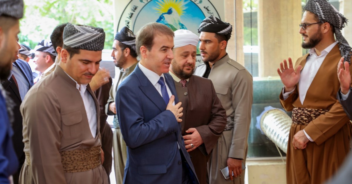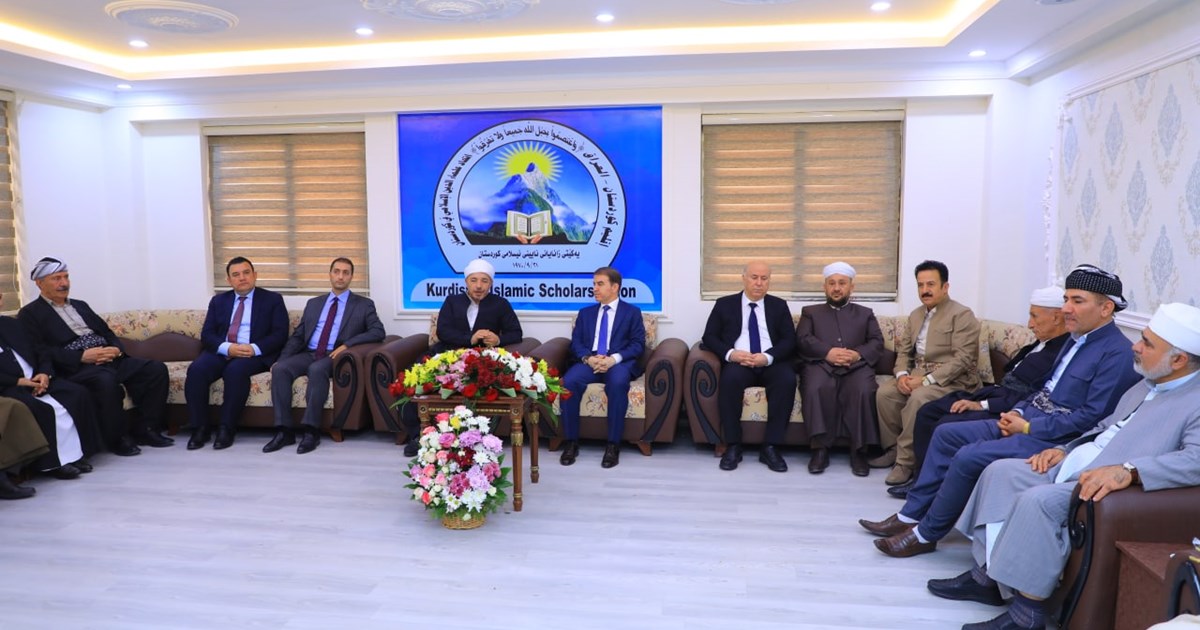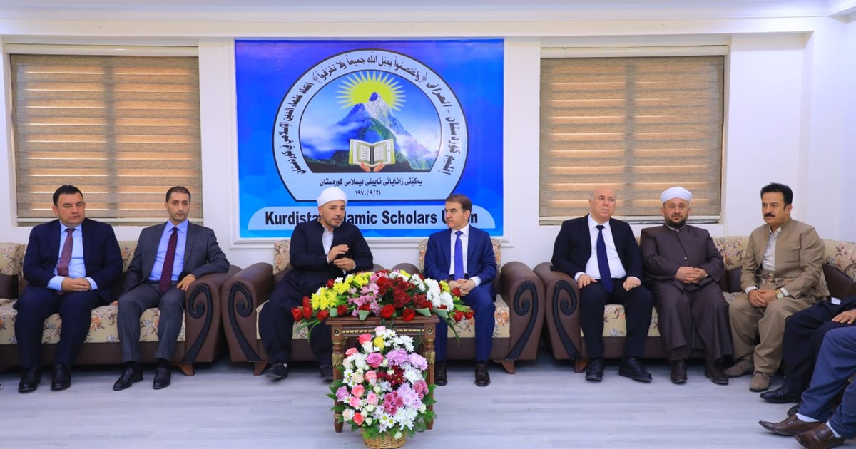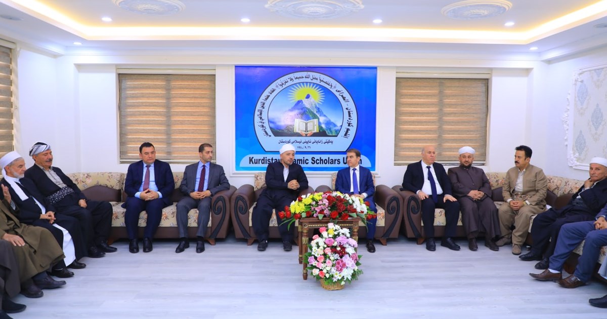 Deputy Speaker Hawrami, accompanied by MPs from Parliament’s Endowments and Religious Affairs Committee, were welcomed by the Head of the union Abdullah Saeed Waisi, members of the Executive Bureau and several religious teachers.