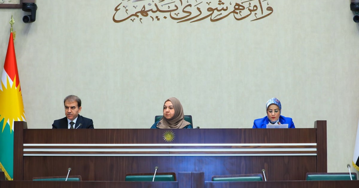 Speaker Faiq presided over the first part of the sitting, with Deputy Speaker Dr. Hemin Hawrami and Secretary Muna Kahveci alongside her.