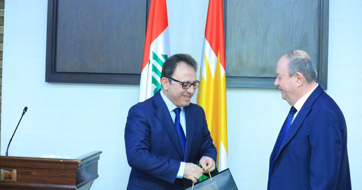 Speaker Faiq, Secretary Kahveci and Mr. Sarspi presented the Parliament shield and appreciation letters to Mr. Chawshli’s to thank him for his years of service.