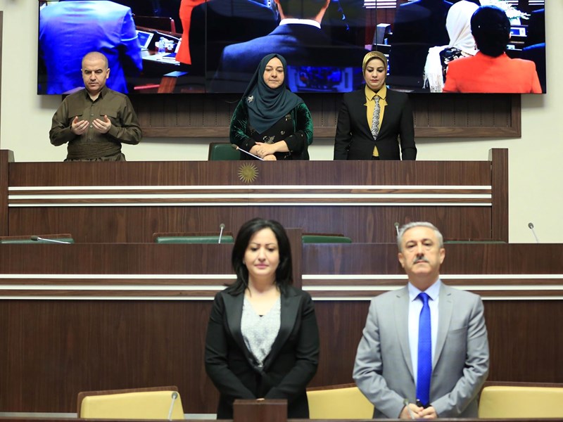 د.رێواز فایق حسێن سهرۆكی پهرلهمانی كوردستان بهناوى خواو گهلی كوردستانهوه دانیشتنهكهی كردهوهو وهك رێزلێنانێكیش له ساڵیادی كارهساتی كۆمهڵكوژیی ئێزدییهكان و ئاسوودهیى رۆحی قوربانیان و نزاى گهڕانهوه بۆ بێسهروشوێنبووهكان و ساڕێژبوونی برین بۆ رزگاربووانى كارهساتهكه، داواى له ئامادهبووان كرد دهقیقهك بهبێدهنگی بوهستن.