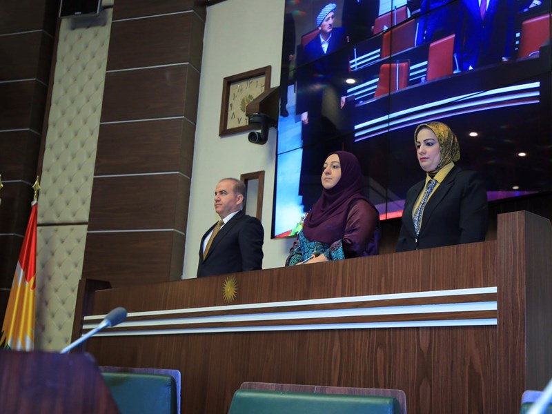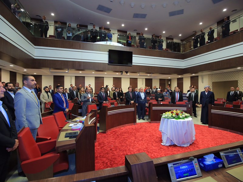سهرهتاى دانیشتنهكه بهدهقیقهیهك بهبێدهنگی وهستان بۆ رێزلێنان لهگیانی پاكی شههیدانی كوردستان و عێراق لهگهڵ مارشی نهتهوهیی دهستیپێكرد و دواتر لهلایهن سكرتێری پهرلهمان بهرنامهى كارى دانیشتنهكه خوێندرایهوه.
